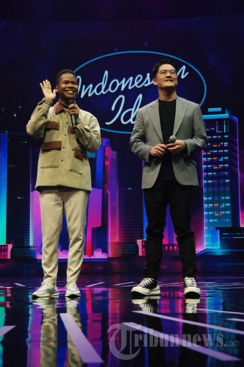 Abdul Azis Ahmad atau Azis Idol (kiri) didampingi host Indonesian Idol, Boy William usai tampil dalam babak Final Showcase 1 Indonesian Idol XII 2023 di Studio RCTI+, MNC Studios, Kebon Jeruk, Jakarta Barat, Senin (23/1/2023) malam. Sebanyak 17 peserta tampil dalam babak Final Showcase Indonesian Idol 2023 yang terbagi dalam dua hari penampilan. TRIBUNNEWS/DWI HARYANTO SAPTO NUGROHO