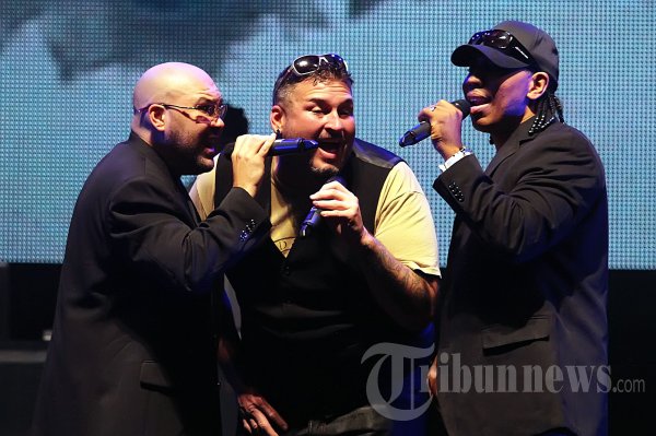 Aksi panggung personel Color Me Badd, Kevin Thornton, Mark Calderon, dan Bryan Abrams saat tampil pada Java Soulnation Festival 2012 di Istora Senayan, Jakarta Selatan, Jumat (28/9/2012) malam. Color Me Badd membawakan lagu-lagu hitsnya dulu seperti All 4 Love, Close To Heaven, dan I Adore Mi Amor pada hari pertama Java Soulnation. (Tribun Jakarta/Jeprima)