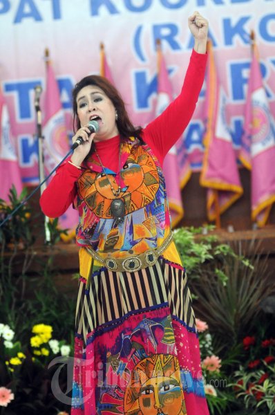 ENDANG S TAURINA - Penyanyi kawakan Endang S Taurina, bawakan lagu 'Gebyar Gebyar' ciptaan (Alm) Gombloh di acara pembukaan Rapat Koordinasi Nasional Partai Karya Republik (PAKAR). Selasa (7/8/2012) yang diselenggarakan di Padepokan Pencak Silat TMII, Jakarta. (TRIBUNNEWS.COM/FX ISMANTO)
