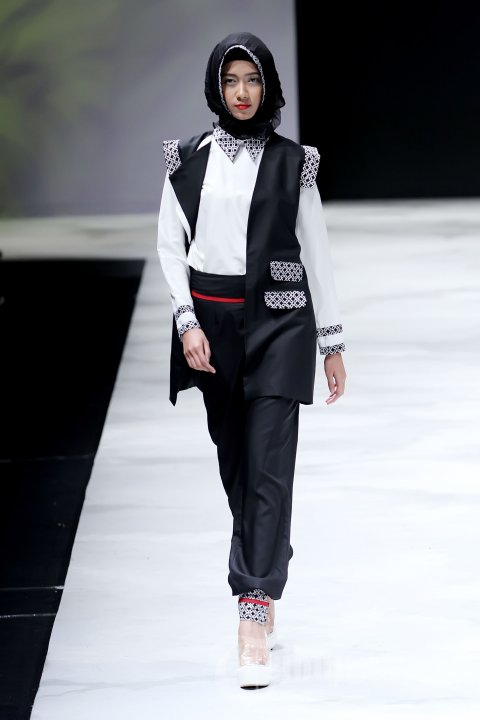 Para model saat mengenakan busana rancangan dari Zaskia Sungkar dengan tema Hitam Poetih pada ajang Indonesia Fashion Week (IFW) 2016 di Jakarta Convention Center (JCC) senayan, Jakarta Pusat, Jumat (11/3/2016). Tribunnews/Jeprima