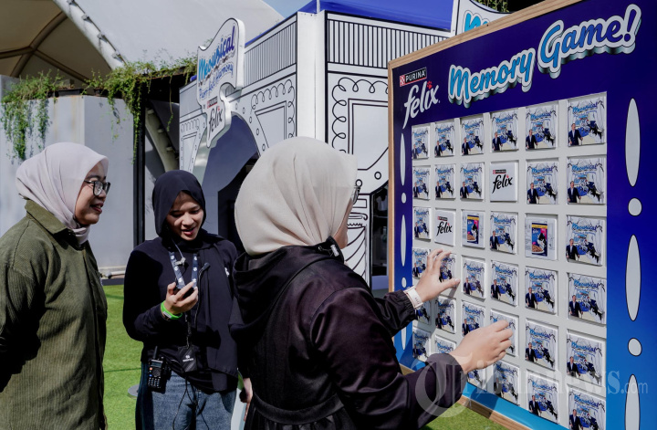 Pengunjung beraktivitas disela-sela acara 'FELIX Intimate Concert: Meowsical' di Jakarta, Sabtu (18/4/2026). PURINA® FELIX, merek makanan kucing dengan tekstur dan aroma lezat dari Nestlé PURINA senantiasa berupaya menginspirasi para Cat Pawrents untuk dapat mempererat hubungan emosional dengan kucing kesayangannya. Merayakan Pet Owners Independence Day yang diperingati pada 18 April, PURINA® FELIX menyelenggarakan 'FELIX Intimate Concert: Meowsical' bagi para Cat Pawrents dengan menghadirkan Brand Ambassador PURINA® FELIX Sal Priadi yang juga merupakan Cat Pawrent. TRIBUNNEWS/IRWAN RISMAWAN