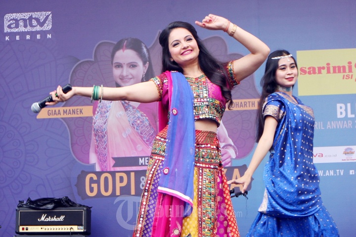 Pemain film asal India, Giaa Manek saat menyapa para penggemarnya pada acara Meet And Greet Gopi & Ashoka yang digelar oleh ANTV di Blu Plaza Bekasi, Jawa Barat, Sabtu (17/12/2016). Giaa Manek merupakan pemeran Gopi, Giaa menyampaikan tentang betapa senangnya dia untuk datang ke Indonesia soalnya banyak fans yang ingin dia datang ke Tanah Air.