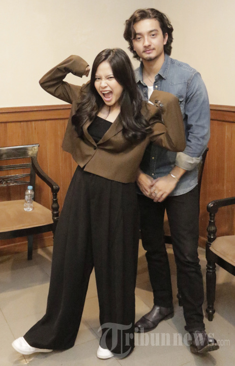 Pemain dalam film Cek Ombak (Melulu), aktris Hanggini dan aktor Bryan Domani berpose dalam sesi pemotretan bersama Wartakotalive.com (Tribun Network) di Falcon Pictures, Jalan Duren Tiga, Mampang Prapatan, Jakarta Selatan, Kamis (13/1/2022). Film Cek Ombak (Melulu) garapan rumah produksi Merpati Film menjadi tempat reuni bagi Hanggini dan Bryan Domani. Film ini tayang di platform Klik Film mulai Jumat (14/1/2022). Warta Kota/Yulianto