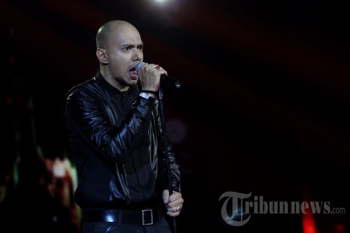 Finalis Indonesian Idol 2014, Husein Alatas atau Husein Idol saat tampil pada babak Spektakuler Show 2 Indonesian Idol 2014 di Studio 8 RCTI, Kebon Jeruk, Jakarta Barat, Jumat (28/2/2014) malam. Husein membawakan lagu Kamu-kamulah Surgaku dari The Rock. (Tribunnews/Jeprima)