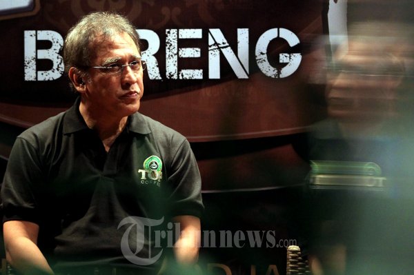 Musisi Virgiawan Listanto atau lebih dikenal Iwan Fals saat menghadiri acara konferensi pers Wings Food yang meluncurkan produk barunya 'TOP' yang merupakan coffee campuran antara robusta dan arabica di Planet Hollywood, Kuningan, Jakarta Selatan, Kamis (26/07/2012). Iwan Fals mengaku kopi membantu memudahkannya dalam berkreativitas. "Bisa dibilang lagu-lagu saya dari tahun tujuhpuluhan itu terdorong dari kopi juga," ucap (Tribun Jakarta/Jeprima)