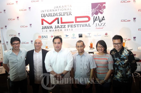 Sejumlah narasumber hadir saat jumpa pers terkait Jakarta International Djarum Super Mild Java Jazz Festival 2013 jelang Festival musik Java Jazz Festival 2013 di Hotel Sultan, Jakarta Selatan, Rabu (30/1/2013). Java Jazz Festival 2013 rencananya akan berlangsung pada 1-3 Maret 2013 di Kemayoran. (Tribun Jakarta/Jeprim