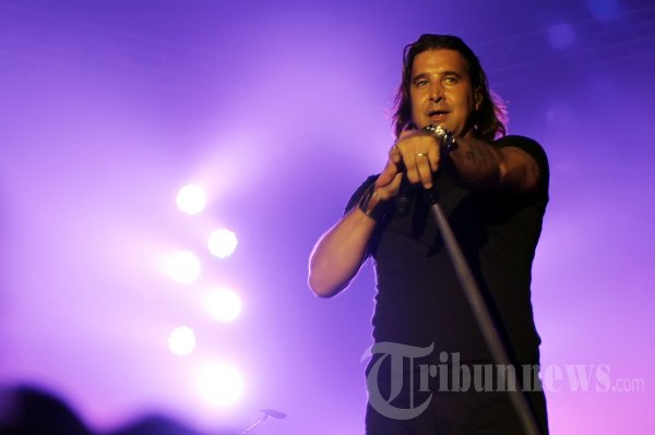 Aksi panggung grup band rock alternatif asal Amerika Serikat, CREED yang beranggotakan Scott Stapp, Mark Tremonti, Scott Phillips, dan Brian Marshall pada konsernya yang bertajuk 'Guinness Arthur's Day' di Gandaria City, Jakarta Selatan, Sabtu (3/11/2012) malam. (Tribun Jakarta/Jeprima)