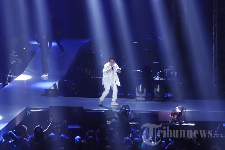 Penyanyi Afgan menghibur penggemarnya pada konser bertajuk Dekade di Istora Senayan, Jakarta, Jumat (9/8/2019). Konser penanda 10 tahun Afgan berkarier di industri musik Tanah Air dibuat spesial. Dalam pertunjukkan kali ini, dia juga turut berkolaborasi dengan Marion Jola, Rendy Pandugo dan Dipha Barus. TRIBUNNEWS/HERUDIN