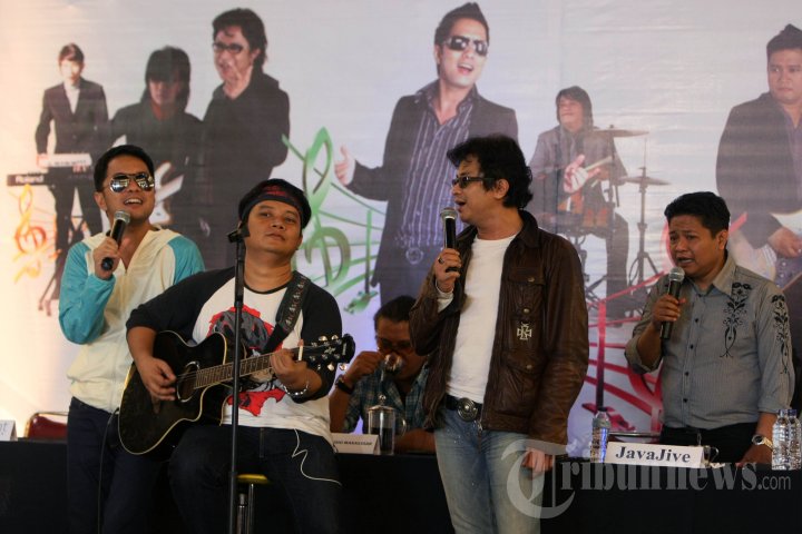 Grup musik Java Jive membawakan lagu barunya 'Jujur' di sela jumpa pers di Trans Studio Mall, Makassar, Kamis (30/5/2013). Band yang berusia 20 tahun ini hadir di Makassar dalam acara Live Musik Java Jive yang dipromotori oleh Trans Event Production dan Trans Studio Makassar. TRIBUN TIMUR/SANOVRA JR