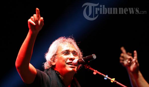 Musisi Iwan Fals menampilkan performanya dalam konser Kantata Barock bersama Setiawan Djodi, Sawung Jabo, dan yang lainnya, di Satdion Utama Gelora Bung Karno, Jumat (30/12/2011). Kantata kembali melakukan konser reuninya di Jakarta, sekaligus melakukan penghormatan terhadap almarhum WS Rendra. (TRIBUNNEWS/DANY PERMANA)