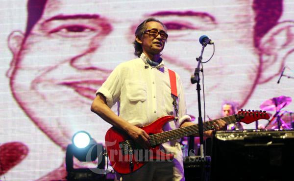Musisi Setiawan Djodi menampilkan performanya dalam konser Kantata Barock bersama Iwan Fals, Sawung Jabo, dan yang lainnya, di Satdion Utama Gelora Bung Karno, Jumat (30/12/2011). Kantata kembali melakukan konser reuninya di Jakarta, sekaligus melakukan penghormatan terhadap almarhum WS Rendra. (TRIBUNNEWS/DANY PERMANA)