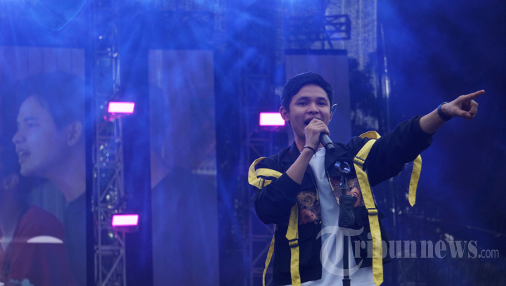Penyanyi Evan Loss tampil membawakan hitsnya Full Senyum Sayang dalam konser musik Java Pop Fest di Stadion Madya, Gelora Bung Karno, Senayan, Jakarta Pusat, Sabtu ( 8/7/2023). Dalam konser ini juga tampil penyanyi Woro Widowati, Pulung Agustanto, NDX AKA dan Ndarboy Genk. Wartakotalive/Alex Suban