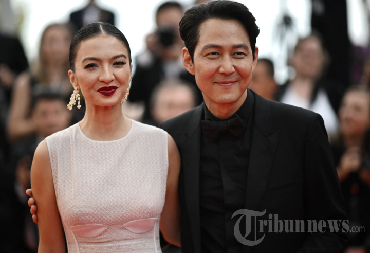 Aktris Raline Shah (kiri) bersama aktor dan sutradara Korea Selatan, Lee Jung-Jae tiba untuk menghadiri pemutaran film "Decision to Leave (Heojil Kyolshim)" dalam Festival Film Cannes edisi ke-75 di Cannes, Prancis selatan, Senin (23/5/2022) waktu setempat. AFP/LOIC VENANCE