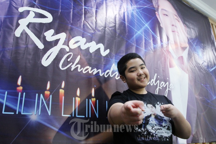 Penyanyi cilik Ryan Chandra Widjaja saat berfoto usai konferensi pers niatnya mendaur ulang lagu lilin lilin kecil di kawasan Pancoran, Jakarta Selatan, Senin (30/4/2018). Ryan mengatakan bahwa ide mendaur ulang lagu Lilin-Lilin Kecil ciptaan James F Sundah muncul setelah dirinya menonton film Chrisye pada akhir tahun lalu, Lagu itu pun sempat menjadi hits berkat Chrisye pada saat itu. Tribunnews/Jeprima