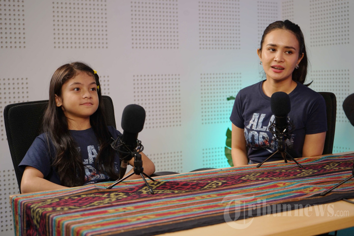SI PALING SELEB - Aktris film Alas Roban Fara Shakira (kiri) dan Michelle Ziudith (kanan) bicara tentang film tersebut, dalam siniar Si Paling Seleb yang syuting di Studio Tribun Network, Jalan Palmerah Selatan, Jakarta Pusat, Senin (24/11/2025). Dalam film drama horor itu, Michelle Ziudith berperan sebagai orang tua tunggal bernama Sita yang memiliki karakter logic, tak terlalu percaya hal-hal ghaib. Sedangkan Fara Shakila berperan sebagai bocah perempuan buta parsial bernama Gendis yang berkarakter penakut. TRIBUNNEWS/LENDY RAMADHAN