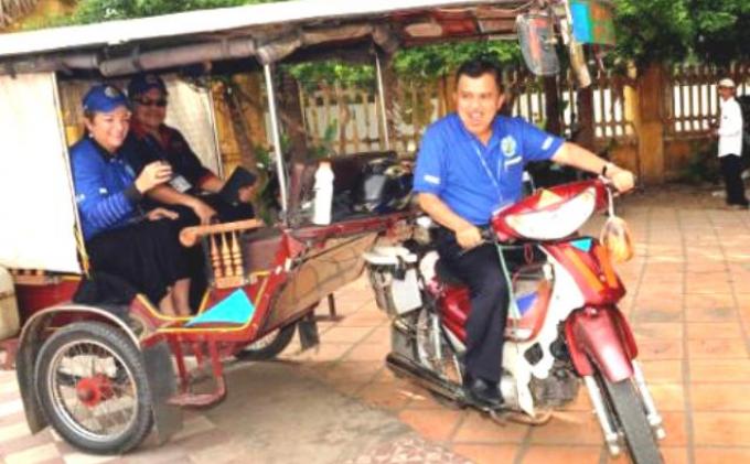 JK panggilan akrabnya berkesempatan menjajal tuk-tuk atau becak khas Kamboja