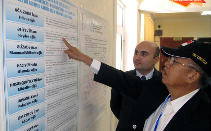 M. Jusuf Kalla, mantan Wakil Presiden RI priode 2004-2009, yang mendapat kepercayaan dari Mili Majelis atau Parlemen Azerbaijan, untuk melakukan pemantauan pelaksanaan pilpres, berkeliling kota Baku mengunjungi sebanyak 5 tempat pemungutan suara.