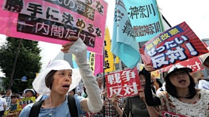 Hari ini Selasa (1/7/2014) sekitar 10.000 orang di Tokyo ikut berunjuk rasa menentang perubahan tersebut.