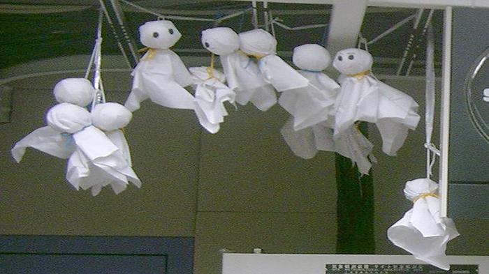 Secara tradisonal, jika cuaca berubah cerah, mereka akan digambari mata (bandingkan dengan daruma), sesajen berupa sake suci dituangkan pada mereka, kemudian dihanyutkan di sungai.