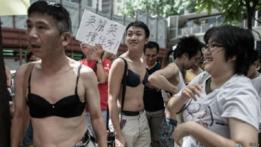 Ratusan pria dan perempuan Hong Kong sengaja memakai kutang di luar baju mereka guna menentang keputusan pengadilan terhadap seorang perempuan yang dituduh menyerang seorang polisi senior menggunakan payudaranya.