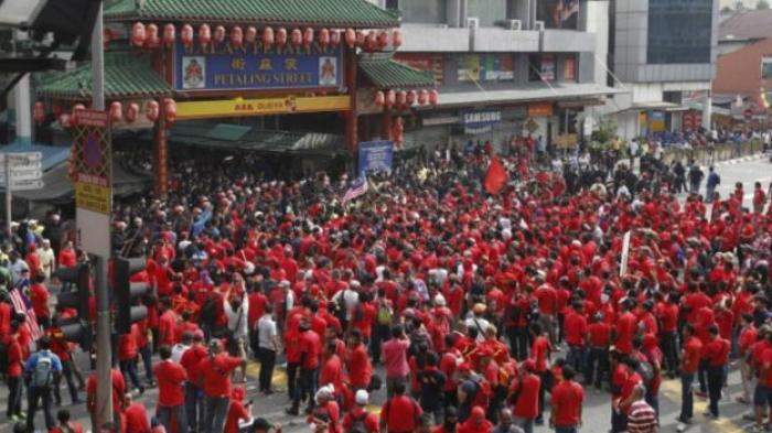 Para pengunjuk rasa menuduh etnis Cina menentang pemerintah dan terdengar pekik-pekik bernada rasis serta membawa spanduk yang mendukung pemerintah.