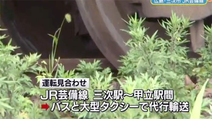 JR menangguhkan operasi kereta api antara Bingo Ochiai Station dan Kotachi Station.