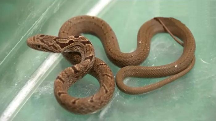 Ular coklat, panjang tubuh sekitar 30 sentimeter, disebut Shimahebi (ular Jepang)