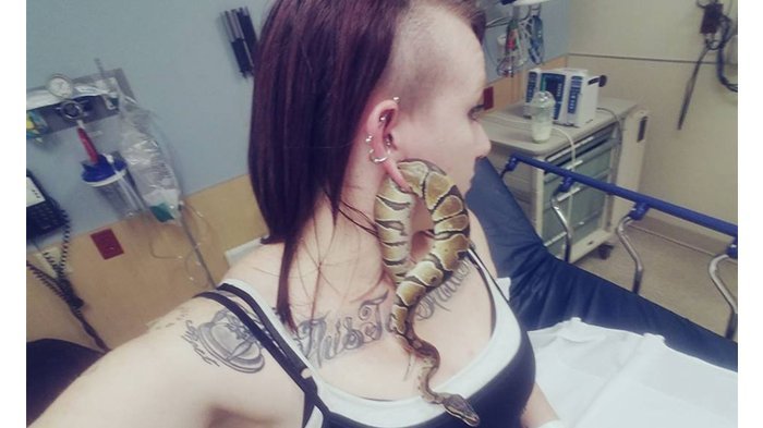 Perempuan bernama Ashley Glawe memelihara seekor ular piton jenis bola yang dinamani 'bart'.
