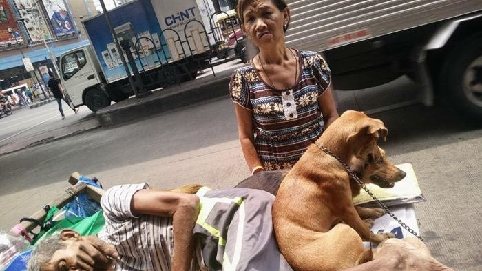 Namun ibu ini sanggup menarik gerobak yang berisi suami dan dua ekor anjing mereka.