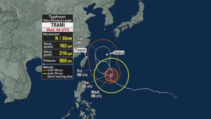 Bersiap mengantisipasi dan memberikan peringatan terkait kekuatan topan yang akan melanda Jepang, pejabat badan meteorologi itu menjelaskan bahwa Sabtu mendatang, Trami diprediksi akan mendekati wilayah Okinawa dan Amami dari Prefektur Kagoshima.
