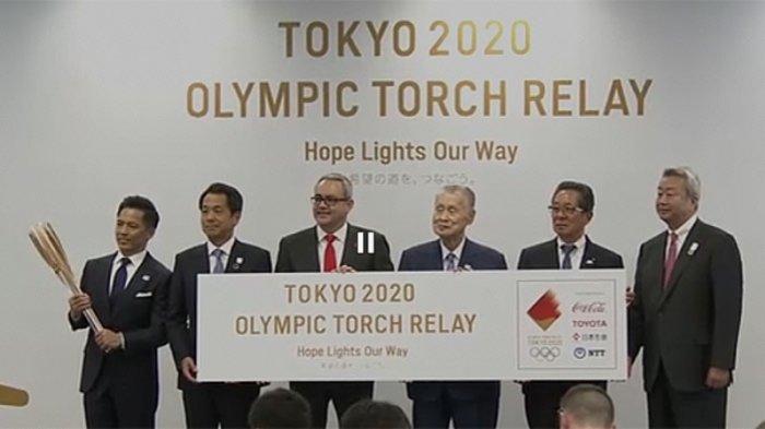TRIBUNNEWS. COM, TOKYO - Pengumuman torch (obor) Olimpiade 2020 dilakukan Rabu ini (20/3/2019) dengan menampilkan obor emas pink berdesain Sakura.