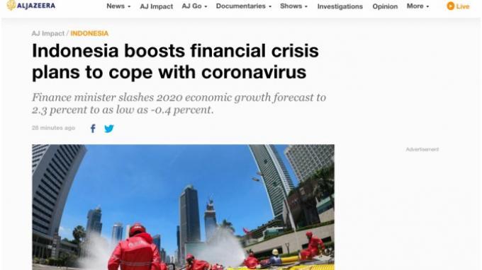 Al Jazeera memberitakan, Menteri Keuangan Sri Mulyani mengatakan, Indonesia telah menyiapkan prosedurnya untuk mencegah krisis keuangan di tengah pandemi corona, mengingat nilai tukar rupiah berada di titik terendah tahun ini.