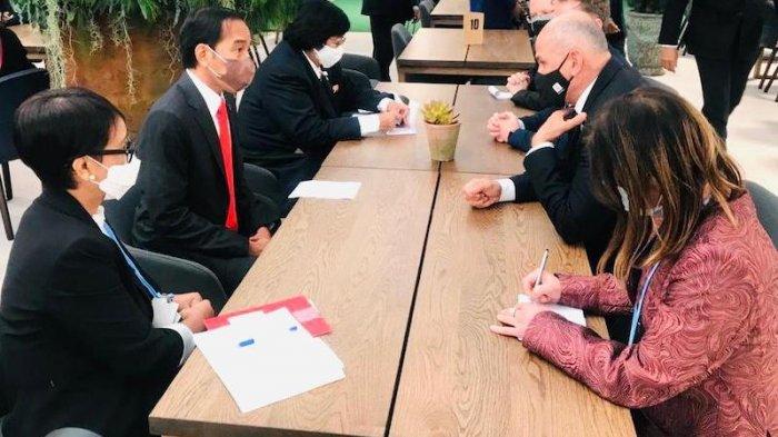 TRIBUNNEWS. COM, JAKARTA - Di sela-sela pertemuan UNFCC COP26 tahun 2021, Presiden Joko Widodo (Jokowi) mengadakan pertemuan bilateral dengan PM Slovenia Janez Jansa di ruang tunggu utama, Scottish Event Campus, Glasgow, Skotlandia, pada Senin (1/1162021).