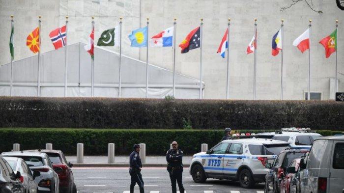 TRIBUNNEWS.COM, NEW YORK - Markas besar Perserikatan Bangsa-Bangsa di New York City ditutup selama tiga jam pada Kamis (2/12/2021) waktu setempat, saat seorang pria bersenjata api terlihat mondar-mandir di luar salah satu gerbang utamanya.