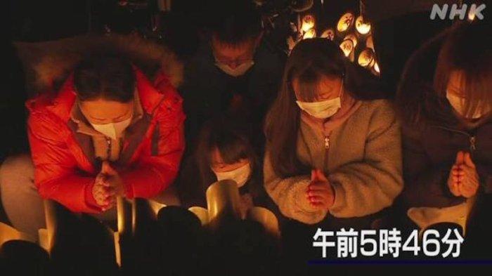 TRIBUNNEWS.COM, TOKYO - Telah 27 tahun sejak Gempa Besar Hanshin-Awaji pada 17 Januari jam 5:46 pagi terjadi, keluarga dan masyarakat Jepang memperingatinya pagi ini dengan berdoa dan tetap berkabung dalam hati para korban di daerah yang rusak parah, seperti Kota Kobe.