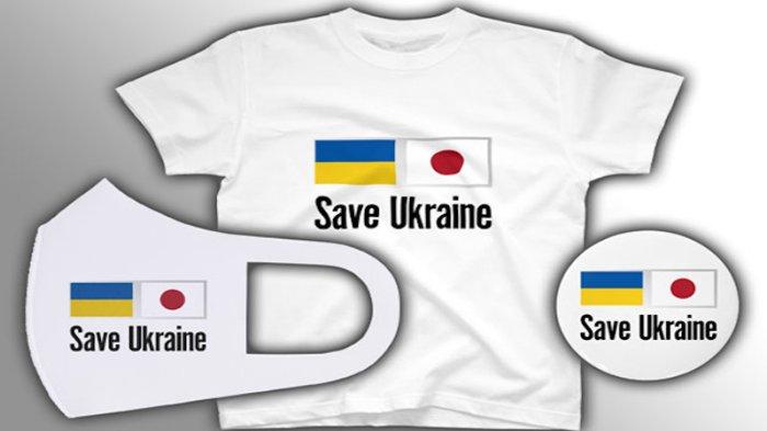 Tampaknya T-shirt dengan bendera Ukraina kuning dan biru tercetak di dada dalam bentuk putih polos dijual sekitar 3000 yen.