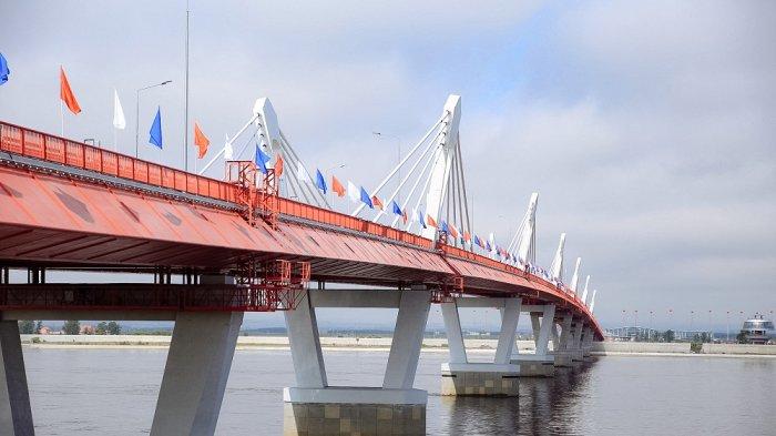 Jembatan tersebut diharapkan dapat semakin memperkuat perdagangan saat Rusia dijatuhi banyak sanksi Barat atas tindakannya di Ukraina.