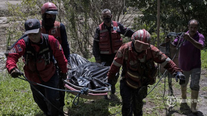 Tim penyelamat dari berbagai lembaga pemadam kebakaran dan Palang Merah membawa satu dari dua mayat yang ditemukan di tepi sungai Tuy beberapa hari setelah tanah longsor yang menghancurkan di kota Las Tejerias di Venezuela pada 11 Oktober 2022. - Harapan memudar pada hari Selasa untuk menemukan hidup salah satu dari mereka. lebih dari 50 orang hilang setelah tanah longsor yang menghancurkan melanda sebuah kota di Venezuela dengan 43 kematian yang dikonfirmasi hingga saat ini. Presiden Nicolas Maduro mengatakan di televisi pemerintah bahwa jumlah korban tewas diperkirakan mencapai 100 orang.