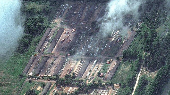 TRIBUNNEWS.COM - Citra satelit yang diambil pada 19 Juli 2023 mengidentifikasi sekitar 300 tenda dan 200 kendaraan di Tsel, Belarusia.