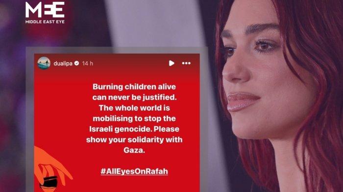 TRIBUNNEWS.COM - Penyanyi asal Inggris, Dua Lipa, bergabung dengan selebritas dunia mengecam pembantaian di Rafah.