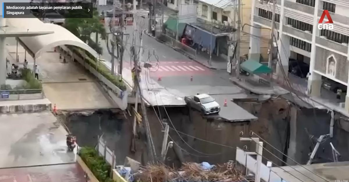 Bangkok digemparkan oleh insiden runtuhan besar dengan kedalaman sekitar 50 meter di depan Rumah Sakit Vajira, distrik Dusit, Rabu (24/9/2025).