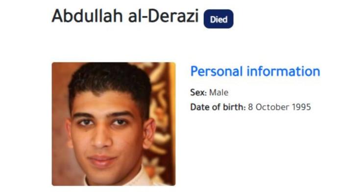 Berdasarkan data yang dirilis organisasi non-pemerintah Amnesty International, Abdullah al-Derazi masih berumur 17 tahun saat ditangkap.