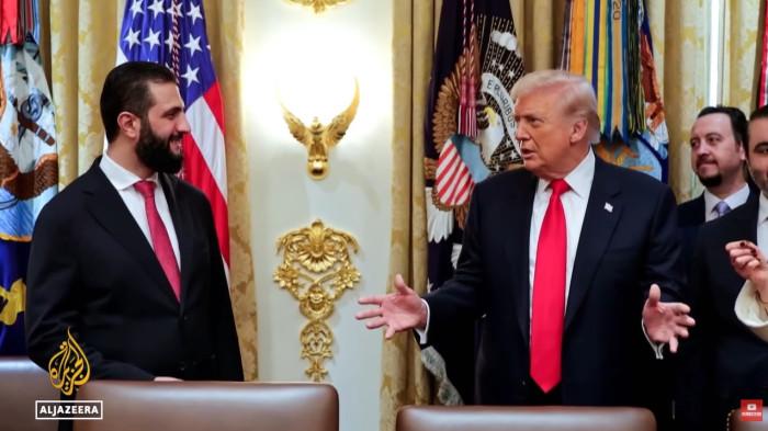 Di sela-sela pertemuan itu, Trump menunjukkan keramahtamahannya kepada Al-Sharaa.