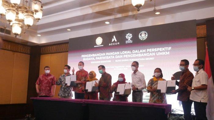 TRIBUNNEWS.COM - Menggelorakan semangat Hari Sumpah Pemuda, Kementerian Pertanian (Kementan) terus melakukan terobosan pengembangan untuk menaikkan kelas pangan lokal guna meningkatkan kesejahteraan masyarakat dan menguatkan perekonomian yang berangkat dari desa. Tak hanya kerja sama dengan perhotelan untuk menjadikan pangan lokal sebagai menu favorite, Kementan pun bersama Hanara Clinic dan Accor Hotel mengembangkan pangan lokal dalam perspektif budaya, pariwisata dan pengembangan usaha mikro, kecil dan menengah (UMKM).