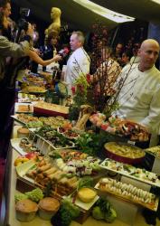 Sushi dan Shelfish stasion juga disiapkan. Untuk menu Cocktail Platters, Wolfgang menyajikan Truffle & Parmesan Grissini, Winter Fruit "Caprese".
