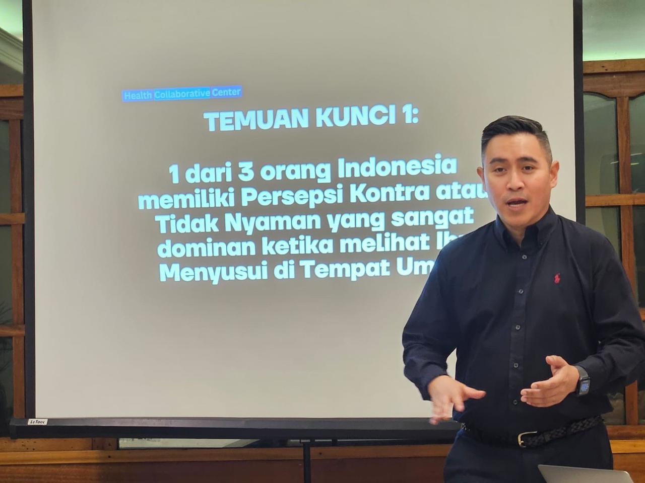 Studi terbaru Health Collaborative Center (HCC) mengungkap, 1 dari 3 orang Indonesia masih tak setuju jika ibu menyusui di tempat umum.
