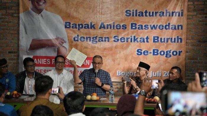 Dalam kesempatan tersebut, Anies Baswedan pun mencatat berbagai keluhan dan masukan yang disampaikan 14 serikat pekerja yang ada di Kabupaten Bogor.