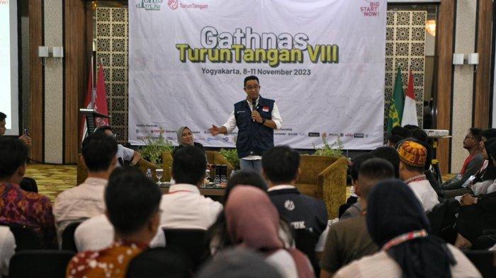 Usia gerakan Turun Tangan yang kini mendekati satu dekade ternyata telah tersebar di 93 kabupaten/kota dengan ribuan anggota. Momen penting bertajuk Gathering Nasional (Gatnas) Turun Tangan ke-VIII yang berlangsung di Grand Serela Yogyakarta, Jumat (10/11), tidak ingin dilewatkan Anies. Kehadiran gubernur DKI periode 2017-2022 itu disambut antusias ratusan anak-anak muda anggota Turun Tangan yang mewakil daerah masing-masing.