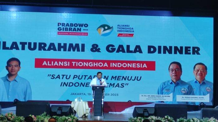 Pernyataan itu disampaikan Prabowo saat hadir dalam acara deklarasi dukungan oleh Aliansi Tionghoa Indonesia, Selasa (19/12/2023) malam.