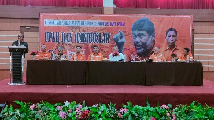 TRIBUNNEWS.COM, JAKARTA - Partai Buruh Jawa Barat menggelar konsolidasi akbar serikat pekerja dan buruh se-Jawa Barat, di Kota Bandung Jawa Barat, pada Rabu (27/12/2023).